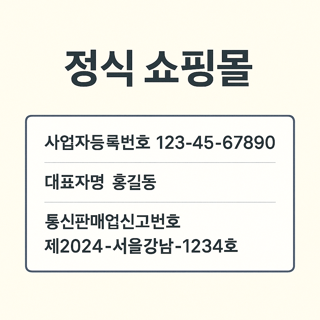 모든 정식 쇼핑몰은 사업자등록번호, 대표자명, 통신판매업신고번호를 명시해야 합니다. 하단에 이 정보가 없다면 불법 또는 유령 쇼핑몰일 수 있습니다.