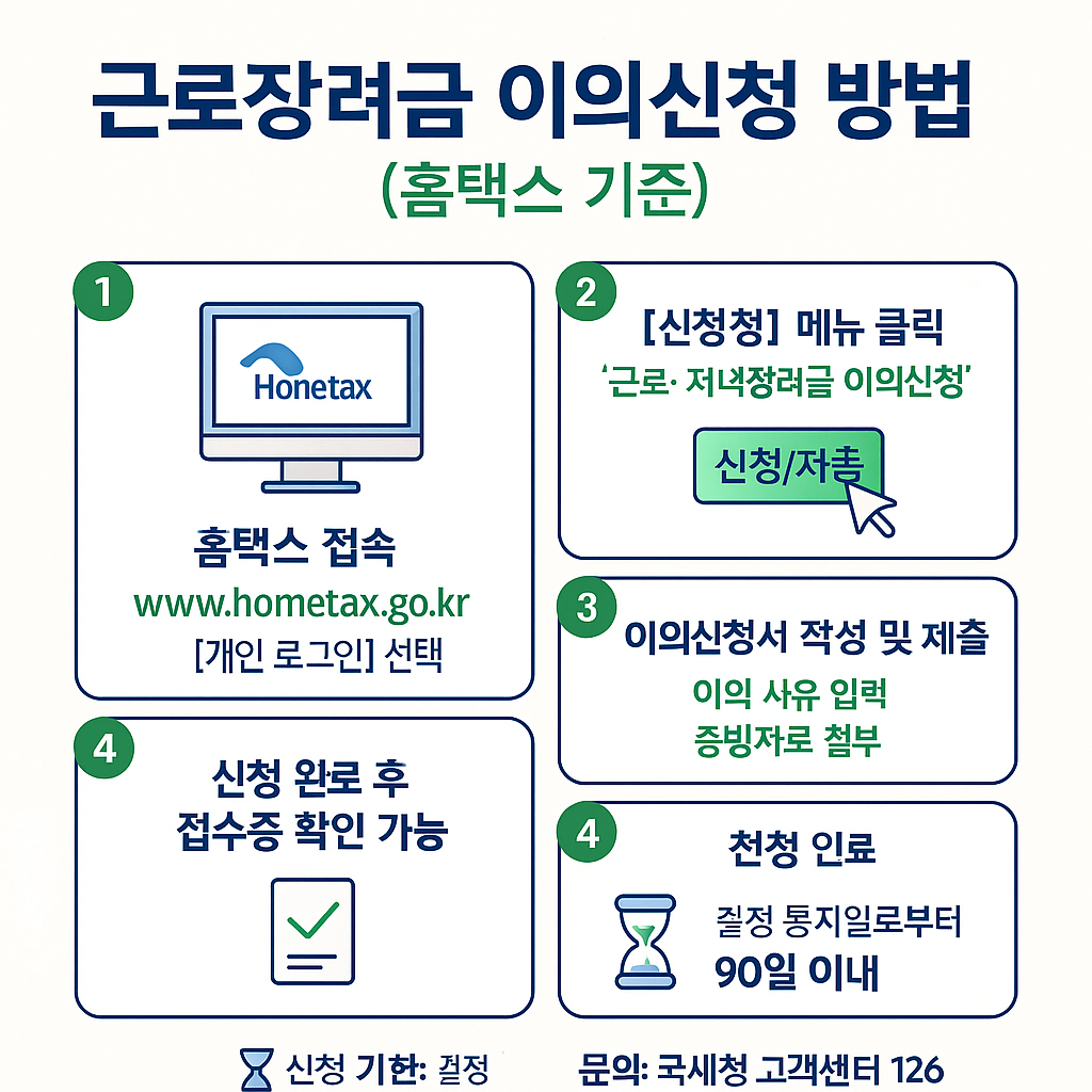 🧾 3. 근로장려금 이의신청 방법 (홈택스 기준)