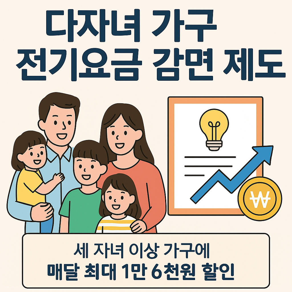 2025년 현재, 다자녀 가구 전기요금 할인 제도는 월 최대 16,000원 감면이 가능하며,