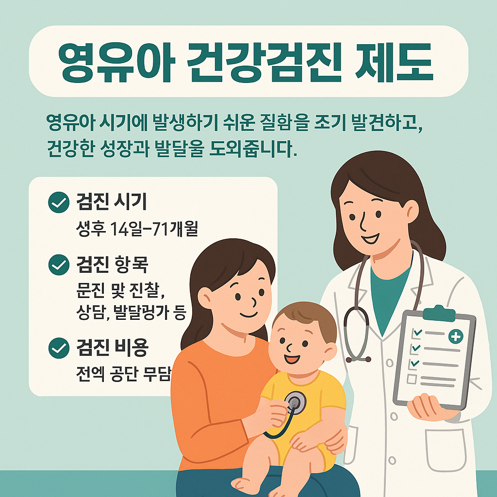 - 검진 항목에는 신체·발달·시각·청각·영양 상담 등 포함