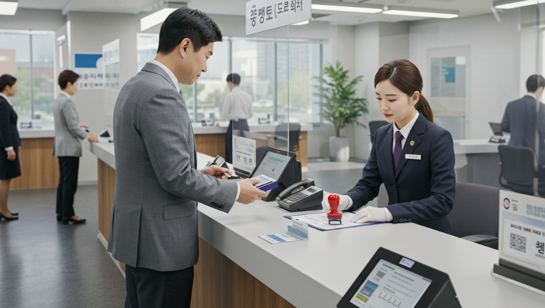 차량등록사업소에서 자동차 명의 이전 절차 진행 모습