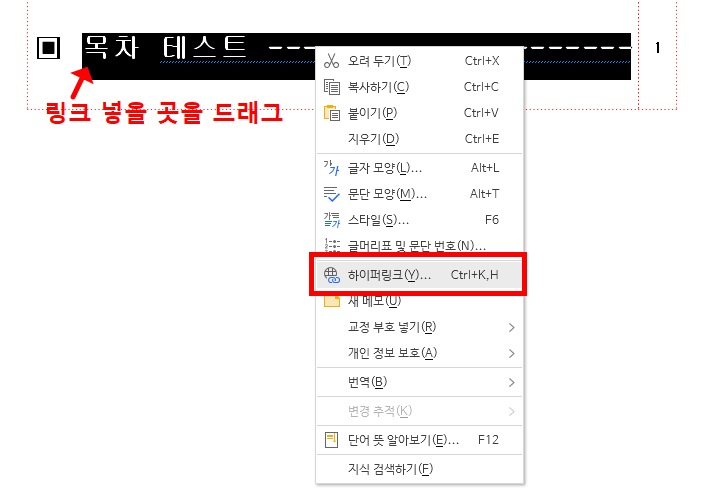 한글 문서 작업을 하다 보면 하이퍼링크와 목차 기능이 생각보다 자주 필요합니다.