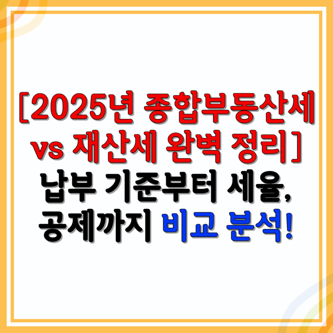 이번 글에서는 2025년 기준으로 종합부동산세 vs 재산세의 차이점,